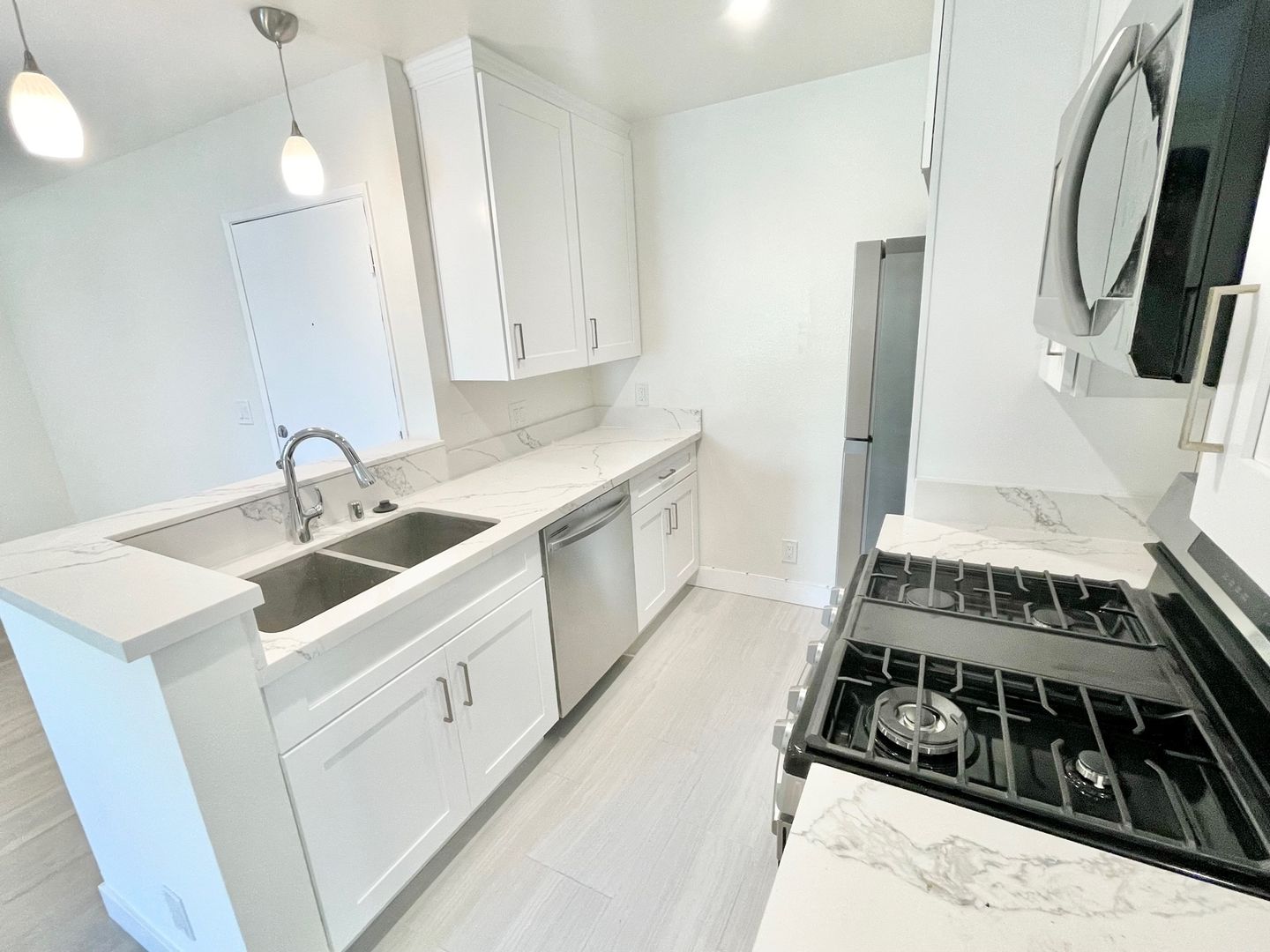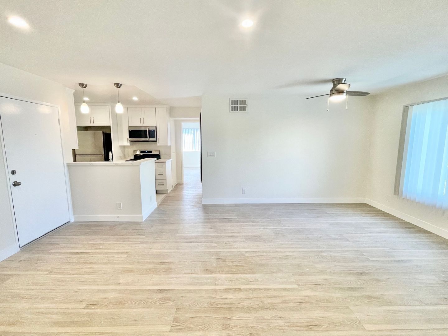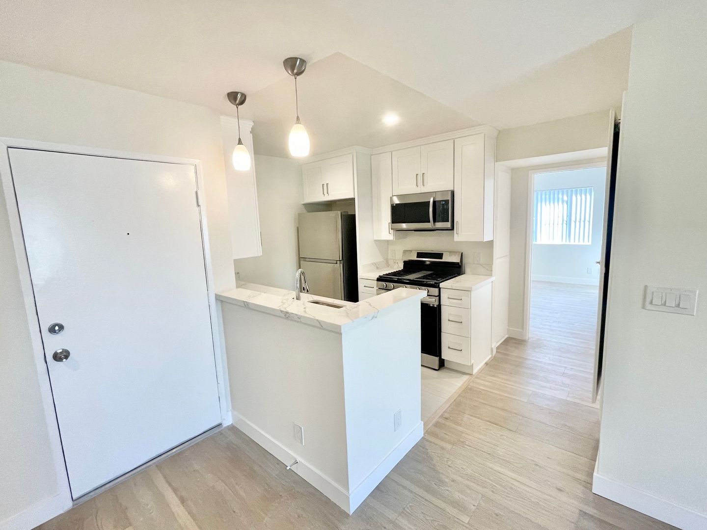 This unit was beautifully renovated. Located on the 2nd floor, it is conveniently located close to the 1 and 10 freeways. The living room is very spacious and connects to the dining room in an open layout.
