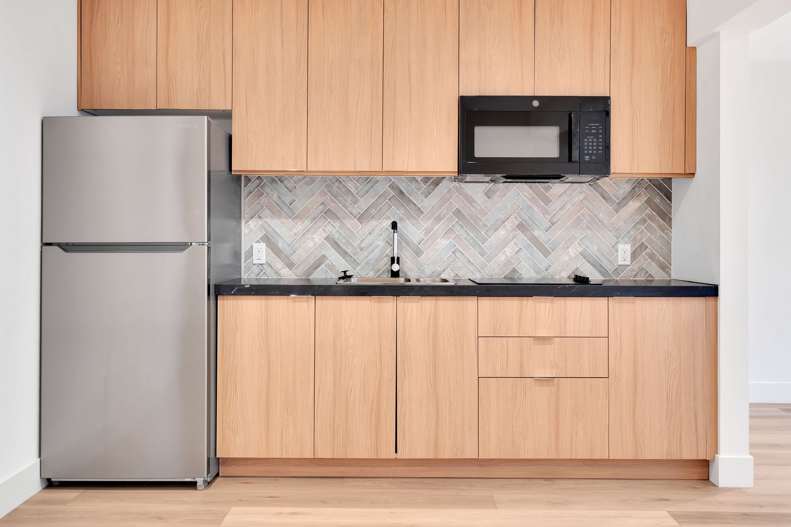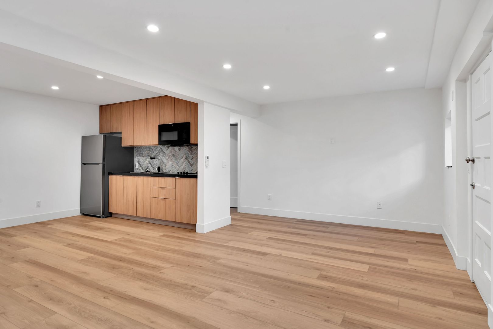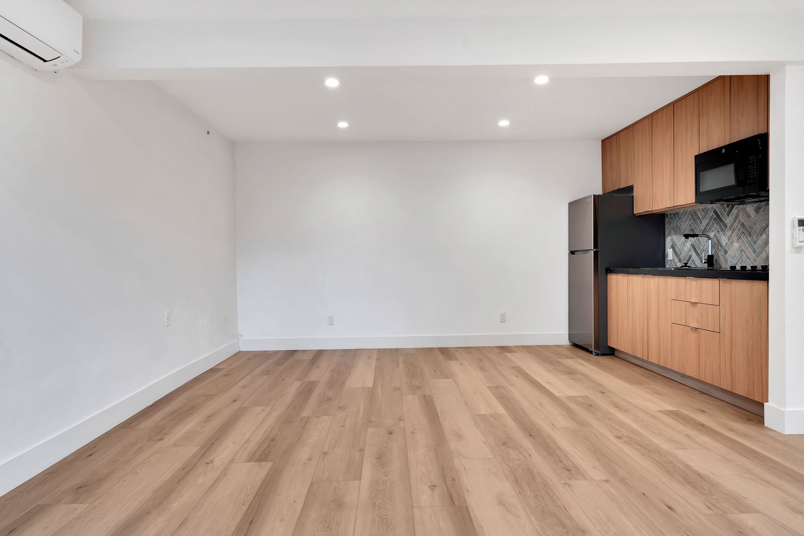 Everything from the laminate floors to the kitchen and bathroom is brand-new in this unit. Kitchen comes equipped with all new appliances (stainless-steel fridge, electric stove-top and microwave).