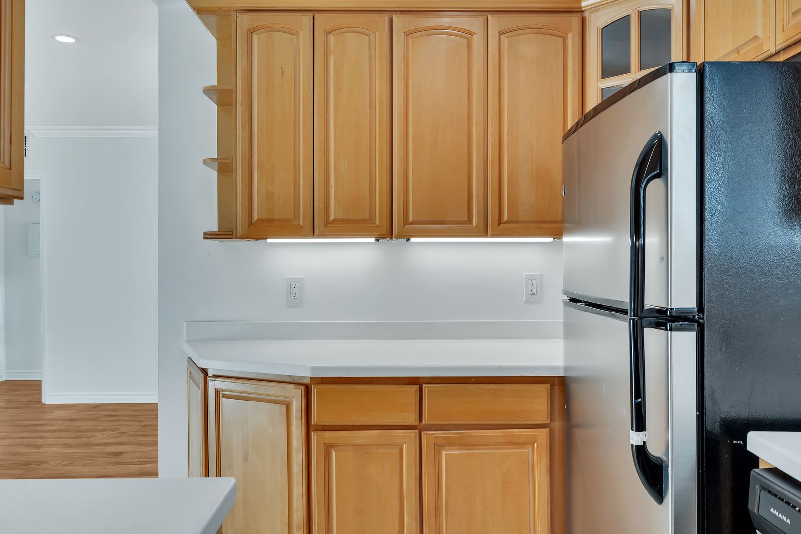-Beautiful hardwood-style laminate flooring throughout — no carpet