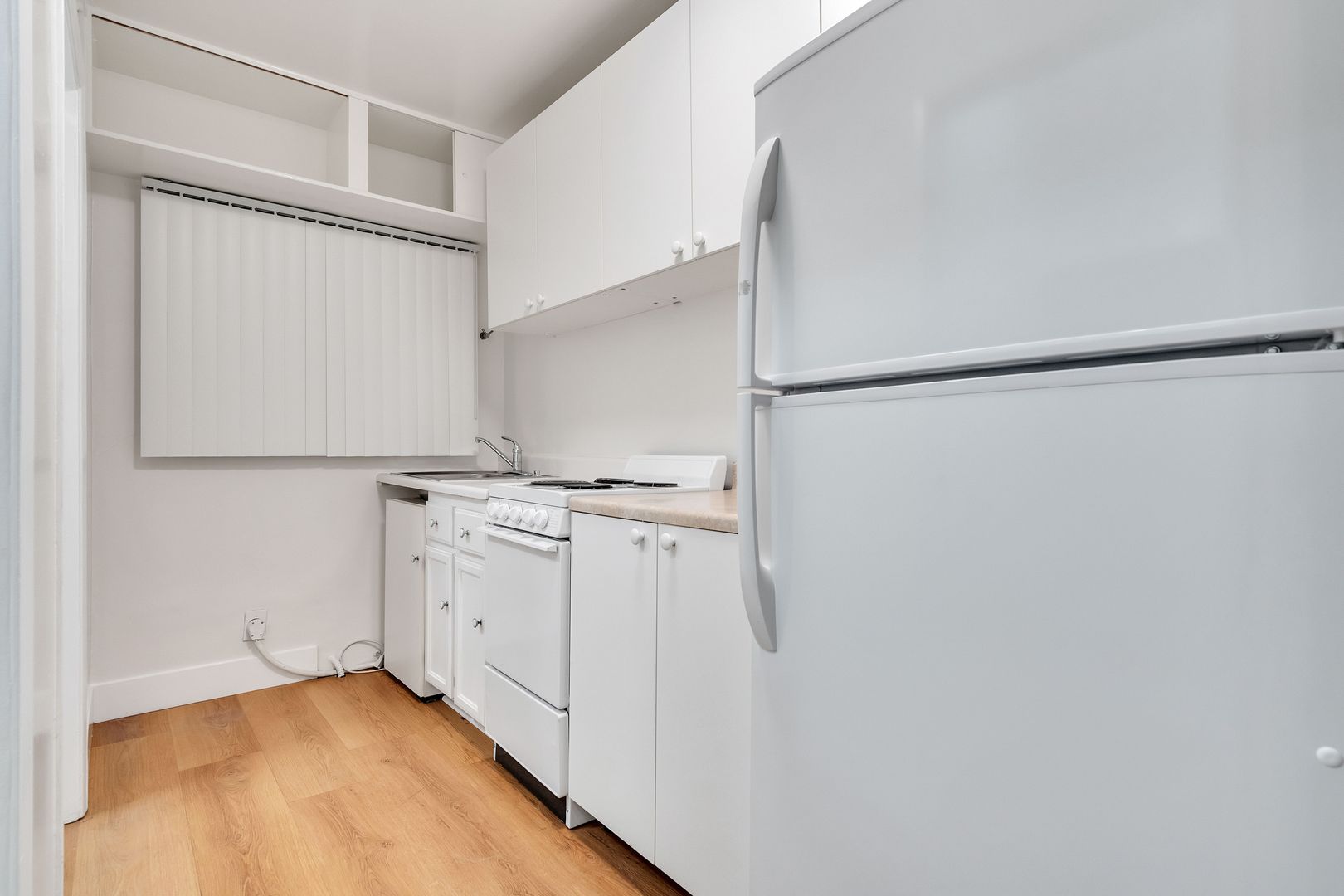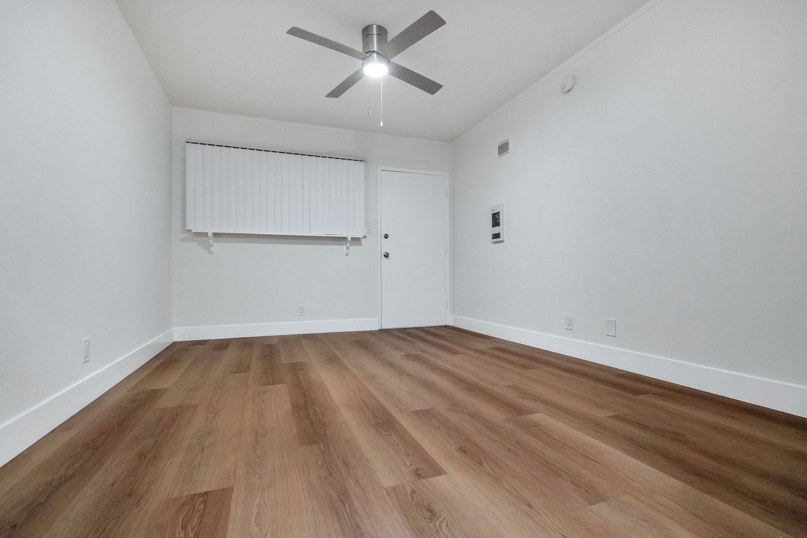 Unit has recently installed hardwood floors throughout; no carpets.